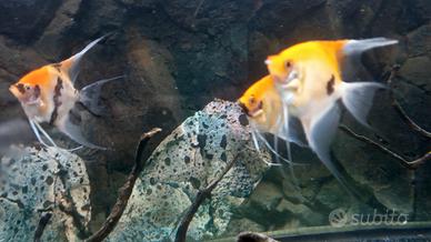 Discus red melon e blu cobalto e scalari red devil