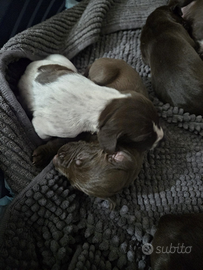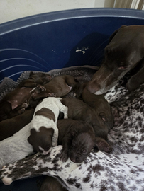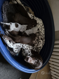Cuccioli di bracco tedesco kurzhaar: 6 femmine (5 marroni e 1 roana già prenotata) e 3 maschi (1 roano e 2 marroni) nati il 29/10. Verranno consegnati microchippati, sverminati e vaccinati, disponibili da gennaio 2026