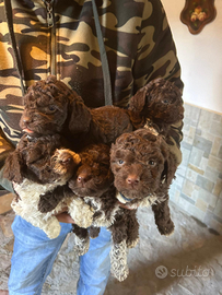 Disponibile da subito cuccioli di lagotto romagnolo mamma e papà di mia proprietà addestrati al tartufo. i cuccioli vengono ceduti con due vaccini e vermifuco fatto i cuccioli sono meravigliosi per chi li vuole adottare per compagnia sono ideali anche se hanno quel pello ricciolino e lungo non fanno muta e quindi non perdono il pelo. Il lagotto e ideale con i bambini contattatemi