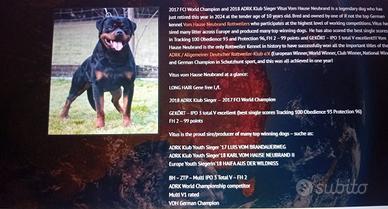 Disponibile maschio alta Genealogia per monta. Madre: Kuba of Royal Musketeers Padre: Vitus Vom Hause Neubrand INT.DT
