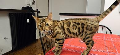 Bengala maschio per monta. È un esemplare dal carattere dolce e affettuoso, ideale per chi desidera una cucciolata con il fascino esotico di questa razza.