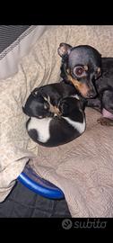 Disponibile ultimo cucciolo nero maschio nato da incrocio Pinscher di 3 anni e Chihuahua di 2 anni entrambi mini toy (entrambi di 1,5kg). Il cucciolo ha 32 giorni di vita, è sano e cresce in ambiente familiare con la mamma. Sverminazione a carico nostro Non sono provvisti di pedigree. Non verrà ceduto prima dei 50-60 giorni di vita, per garantire una corretta crescita con la madre. Provincia di Modena Ritiro solo di persona, non si effettuano staffette o spedizioni. Per maggiori informazioni o foto dei genitori e del cucciolo scrivere in chat.