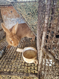 Conigli puri fulvo borgogna e incroci da carne