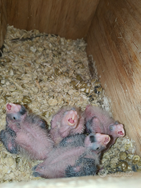 Disponibili pulli da imbecco di calopsite di varie mutazioni come perlati faccia bianca,perlati faccia bianca cannella e albini e a breve saranno disponibili altre mutazioni come perlati faccia gialla lutini pezzati faccia bianca e molte altre mutazioni al momento prendono 3/4 poppate al giorno saranno ceduti con anello inamovibile foi.