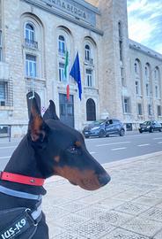 Vendesi a malincuore per trasferimento bellissimo cucciolo dí 7 mesi Doberman estero linea "slava" futura taglia gigante .Cucciolo in perfetta salute , esami strutturali e controlli eseguiti vaccinato microcippato e sverminato. Cucciolo molto reattivo necessita di spazio per correre , preferibile evitare appartamenti ..annuncio riservato a persone serie conoscenti della razza e che possono tenerlo in giardino o villa .Perfetto come cane da guardia .Cedo insieme pettorine e collari da addestramento giochi/corde più sacco da 12 kg di crocchette +integratori condrogen puppy