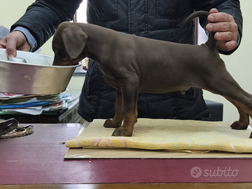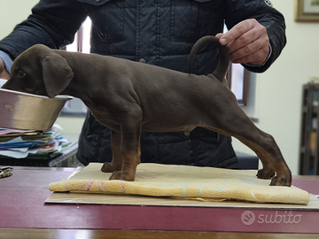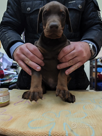 Vendesi dobermann cuccioli maschi, neri o marroni, figli di soggetti frutto di selezione. I genitori risultano esenti dalle malattie di razza con certificazione ufficiale per la displasia e la von Willebrand. I cuccioli verranno ceduti con 3 sverminazioni, inoculazione microchip, iscrizione anagrafe canina e pedigree ENCI.