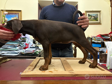 Stupendi cuccioli di dobermann di 2 mesi e 1/2, un maschio nero ed uno marrone, di altissima genealogia si cedono con sverminazioni, iscrizione anagrafe canina, microchip, vaccinazioni e pedigree ENCI. I cuccioli risultano essere socializzati e pronti per entrare a far parte del nuovo nucleo familiare. Adatti a expo, lavoro o famiglia.