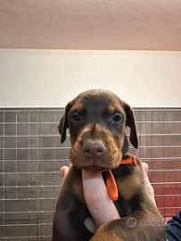 Disponibili da subito cuccioli di Dobermann marrone focato di ottima selezione. Figli di genitori selezionati per salute carattere e bellezza, nati in ambito ed ambiente familiare con pedigree, microchip, libretto sanitario vaccinale, sverminazioni e vaccinazioni eseguite. Ultime disponibilità, ottimo prezzo! Simone 3899872647