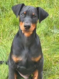 Splendidi cuccioli dobermann, maschi e femmine neri focato. Quattro mesi di età, i cuccioli vengono consegnati con pedigree ENCI/FCI, microchip, libretto sanitario, registrazione all'anagrafe canina, svermati completamente vaccinati. Genitori con DNA depositato, esenti da displasia dell'anca, test genetici effettuati. Cuccioli cresciuti in ambiente familiare, socializzati. No sms
