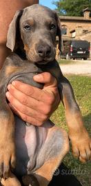 Meraviglioso dobermann di 2 mesi blu focato, particolare e unico con i suoi occhi azzurri ed un mantello raro, un carattere fantastico, socievole e dolcissimo. Allevamento riconosciuto e certificato Enci vende il cucciolo ad amatori e appassionati. Si cede con vaccini, microchip, iscrizione asl , pedigree (not for breeding) . Genitori selezionati per tutte le patologie , campioni con brevetti.