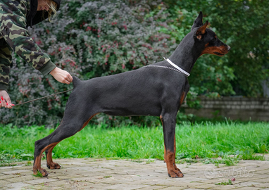 Allevamento professionale FCI di dobermann disponibile una femmina di 9 mesi ottime linee di sangue ,completo pacchetto di documenti, microchip,export pedigree, passaporto, trasporto autorizzato.Per info 3804352834