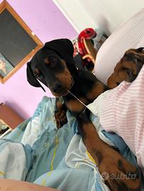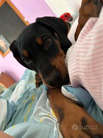 Vendo la mia cagnolina, è una dobermann di 6 mesi. Ha tutti i vaccini fatti, tra qualche giorno anche quello della leishmaniosi. È molto sveglia e vivace, la vendo a malincuore perché stando in un piccolo appartamento mi viene difficile tenerla. Cedo solo a qualcuno che la possa trattare con il rispetto che merita. Il prezzo è trattabile