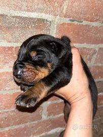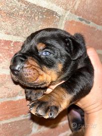 Disponibile per la prenotazione un splendido maschio di Dobermann nato 09/04 peso 700g! La cucciolata è stata selezionata per la salute, carattere e giustamente non manca la struttura fisica! I cuccioli saranno cresciuti a stretto contatto con la famiglia, saranno seguiti passo dopo passo nella crescita di tutti giorni con educazione di base come conoscenza del ambiente familiare e impostazione di equilibrio totale verso i stimoli primari come cibo e il gioco! cucciolo sarà affidato alla famiglia in base di compatibilità caratteriale in modo tale che futuri genitori potranno vivere in pieno il loro bambino senza scontri di incompatibilità! Un Dobermann è un cane per la vita che non vi tradirà mai e darà la vita per la vostra famiglia! Dobermann ha bisogno di persone responsabili e consapevoli che non è un cane per tutti e un impegno quotidiano che costruisce un amico affidabile e equilibrato! Se siete pronti accogliere un angelo senza ali nelle vostre famiglie è un bambino per voi !sara affidato dopo 70 giorni di vita con tutto iter veterinario completo per eta del cucciolo alla consegna!Richiesta di rimborso spese in base della cucciola ! Disponibilità per tutta la vita del cucciolo per qualsiasi informazione sull'alimentazione o educazione!Per altre informazioni più dettagliate in privato!