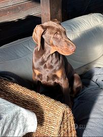 Dobermann maschio di quattro mesi , marrone focato , ben educato, ottimo carattere , x qualsiasi informazione contattatemi in privato grazie