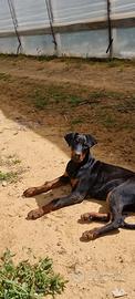 Disponibile cucciola di doberman nero focato. La cucciola è nata il 21/11/25 ed è disponibile per la consegna. Verra consegnata con: -Pedigree ENCI -Ciclo vermifugo -Profilassi vaccinale -Microchip -Libretto Sanitario -Puppy kit Possibilità di trasporto in tutta l Italia. Per altre info contattare.