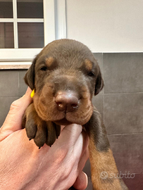 Cuccioli di Dobermann Maschi e Femmine Neri e Marroni Focato figli di genitori selezionati per salute carattere e bellezza, disponibili dopo i sessanta giorni di vita con libretto sanitario, microchip,vaccinati,sverminati, pedigree di Buona Genealogia