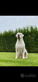 Disponibile splendido maschio di Dogo Argentino di 5 anni con importante genealogia, linea Antiguo Guerrero, selezionato per struttura, salute e carattere. Completo di pedigree e certificazioni. Soggetto completamente sano, privo di displasia, dermatiti o problemi uditivi, ciclo completo di vaccinazioni effettuate regolarmente. Cane robusto e potente, con stazza leggermente sopra la media ma perfettamente proporzionato e armonico tra anteriore e posteriore. Carattere molto equilibrato, sicuro e naturalmente protettivo, tipico della razza. Ottimo temperamento e grande affidabilità. Ideale per allevamento serio o per chi cerca un vero Dogo Argentino di qualità. Per informazioni, genealogia completa e ulteriori dettagli, contattare in privato