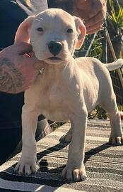 Allevamento DEL GITANO VIEJO, riconosciuto ENCI, offre in vendita una cucciola di Dogo Argentini di 60 giorni, con pedigree e documenti ufficiali.