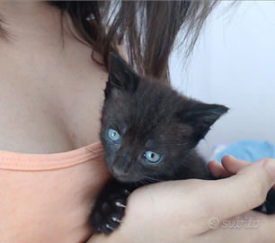 Sono Oscar un gatto nero come quello dello Zecchino d'oro. La mia eleganza si può ben vedere dal mio papillon bianco. Dolce e soffice, la mia sorellina è già in preaffido, rimarrò solo se nessuno mi adotta!! Meow!!