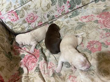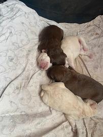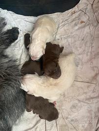 Dolcissimi 4 cuccioli nati il 14 gennaio 2026 da padre Golden e madre mix golden pastore australiano , carattere buono e molto affettuosi 2 marroni tipo cioccolat e 2 miele . Disponibile da metà marzo , saranno accolti dalle nuove famiglie con libretto sanitario , sverminati - primo vaccino e inscrizione anagrafica . canina .Richiesta e solo spese sanitarie- veterinarie .