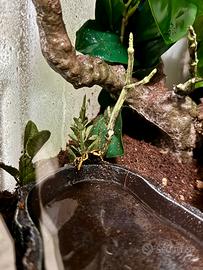 Dondrebates leucomelas di un anno con certificato + Terrario