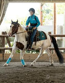 Bellissima pony in vendita, anni 4, adatta per le prime messe in sella, ma anche per cavalieri più esperti. Utilizzata già per la scuola e per alcune gare di gimkana western pony.