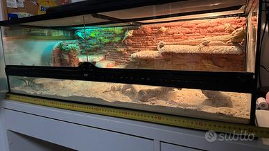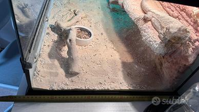 vendo esemplare di Drago Barbuto (Pogona Vitticeps) nato a luglio 2025. Il rettile è in ottima salute, abituato al contatto umano e molto vivace. Lo cedo esclusivamente per mancanza di tempo necessario a garantirgli le attenzioni che merita. L'offerta è un pacchetto "chiavi in mano", ideale per chi vuole iniziare o per chi cerca un set già completo di tutto il necessario per il benessere dell'animale. ? Cosa è incluso: o Teca: Dimensioni adeguate e già allestita. o Illuminazione: Portalampade completo e 2 lampadine di riserva nuove. o Arredamento: Ramo per il basking e decorazioni varie. o Manutenzione: Un sacco di sabbia nuovo e setaccio per la pulizia del substrato. ? Kit Alimentazione e Cura: o Integrazione: Calcio in polvere per gli insetti da pasto. o Attrezzatura: Pinzette professionali per il cibo e box in plastica per lo stoccaggio degli insetti. o Extra: Piccolo guinzaglio per passeggiate in sicurezza e accessori vari per la pulizia e l'igiene. prezzo leggermente trattabile