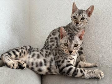 Rilasciamo due gatte razza bengala con pedigree, tutto in regola, test genetici, rimborso spese di euro 1500 entrambe. Le gatte hanno sei mesi circa