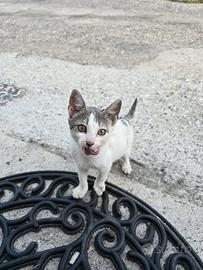 questi due cucciolini dolci cercano un anima buona che voglia far un una doppia adozione e prendersi cura di loro, si tratta di una gattina dolcissima con il manto maculato di grigio e bianco e un gattino rosso e bianco anche lui dolcissimo ;loro non si separano quasi mai e se uno dei due non trova l'altro lo chiama disperato.