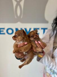 Due maschietti di chihuahua , pronti dall ' 8 di maggio...con microcip , primo vaccino, sverminazione, passaggio di propieta' iscrizione all anagrafe canina...no perditempo...pelo lungo, genitori miei di propieta' ....