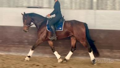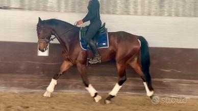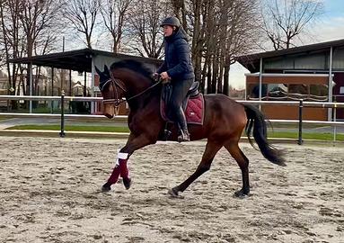 Levino è un bellissimo castrone di 6 anni, alto circa 162 cm. È un cavallo coraggioso e senza paura, che ha una grande volontà di compiacere il suo cavaliere. Levino dispone di buone andature di base e dà molta soddisfazione nel lavoro quotidiano. Il lavoro sul salto è appena iniziato: anche in questo ambito mostra potenzialità e qualità, ma necessita ancora di ulteriore formazione. Carica senza problemi sul trailer ed è estremamente semplice da gestire in tutte le situazioni. È un cavallo molto dolce e affettuoso. Essendo ancora all'inizio della sua formazione, non è adatto a cavalieri assolutamente principianti. Tuttavia è facile da gestire e perdona gli errori del cavaliere. Chi cerca un vero compagno con cui crescere e costruire un percorso insieme, troverà in Levino il cavallo giusto.
