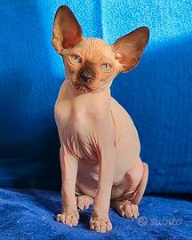 Maschietto di appena 5 mesi ELF STRAIGHT ( genetica Elf forma orecchie Sphynx). Carattere super dolce abituato alla lettiera bagnetto taglio unghie. Adatto a famiglie con figli o altri animali.