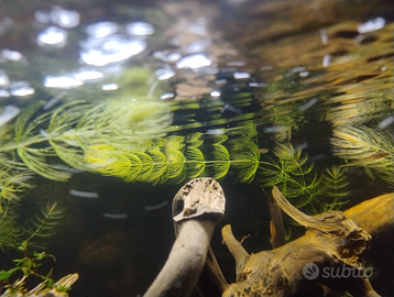 Cedo porzione di Ceratophyllum demersum, detto anche ceratofillo comune, è una pianta acquatica sommersa a crescita rapidissima, molto usata in acquari e laghetti per ossigenare l'acqua, assorbire nutrienti in eccesso (come nitrati e ammoniaca) e combattere le alghe, grazie alla sua capacità di competizione e allopatia; non ha radici e galleggia, offrendo riparo a pesci, tollera diverse condizioni ambientali ed è facile da coltivare, ideale anche per principianti e per fitodepurazione. Cedo a 5 euro
