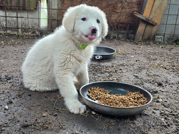 Nato i primi di dicembre è l'ultimo di una cucciolata di 8 trovata in un cannetto a bordo strada sotto la pioggia battente e la grandine.
