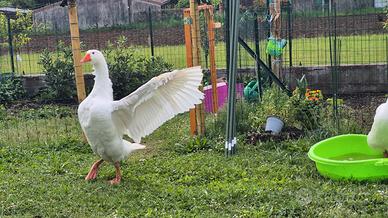 Maestoso esemplare di oca bianca maschio. 1 anno, abituato alla vita di campagna in fattoria cedesi oppure scambio con esemplare di oca femmina bianca.