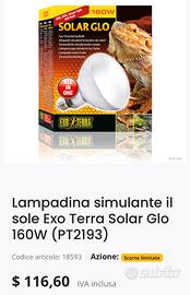 Lampadina exo terra solar glo ideale per rettili e terrari. Nuova mai utilizzata. Comprata per scorta. Spedizione super imballata