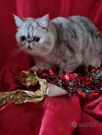 Disponibile cucciolone di 9 mesi exotic shorthair ( simile, perché ne ha tutte le caratteristiche della razza ma non il pedigree) mantello silver , caratterialmente dolcissimo .