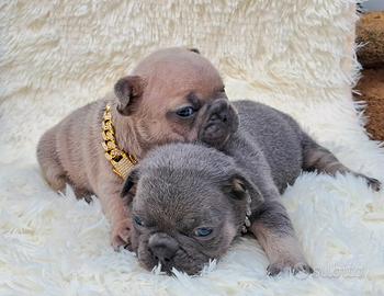 Disponibile alla prenotazione dei super cuccioli di bulldog francese un maschio e 1femmina,genitori in mio possesso e trambi esotici,mamma blue tan e papà blue merle