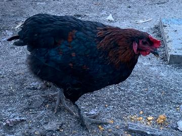 Gallo Fantastico di quasi sei mesi. incrocio per ottenere F3 di Marans o Olliver Egger (come si vede dalle piume e senza coda) ... La madre fa uova di media 70G Vendita o scambio con pollastre