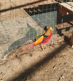 Cercate degli animali unici nel proprio genere? I fagiani dorati sono nella top 10 degli uccelli più belli del mondo! I fagiani dorati sono incredibili; il piumaggio del maschio è spettacolare! Il carattere è docile, vive tranquillamente con tutti gli altri avicoli! Non hanno bisogno di particolari cure, con un'ala spuntata o una voliera può vivere tranquillamente in cattività! È possibile prenotarli, saranno disponibili da inizio luglio/agosto. Il prezzo a capo è 40? la coppia 80? Non esitate a contattarmi su subito o a chiamarmi dalle 18:00 in poi!