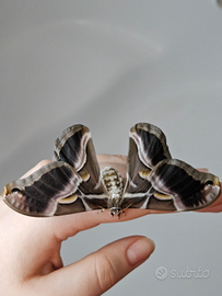Ha un'apertura alare di 10-12 cm e ali marroni super particolari con punta che somiglia a occhio di serpente.