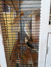 5 Calopsitte, papà più 4 figli nati qui in casa, molto tranquilli, possibilmente gradirei rimanessero uniti essendo una famiglia. Regalo gabbia