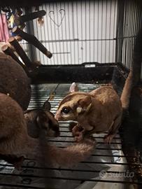 Vendo gabbia con coppia di petauri + un cucciolo nato a giugno , non li vendo singolarmente in quanto sono una famiglia e vivono in simbiosi , li vendo per mancanza di spazio ., quindi solo le persone realmente interessate mi devono contattare . La coppia l'ho comprata a maggio del 2024. avevano circa 3/4 mesi all'epoca. Hanno bisogno di una famiglia che si prende cura di loro , sono animali delicati, notturni , non devono stare fuori al freddo. AGGIORNAMENTO: LA FEMMINA E' IN DOLCE ATTESA :)