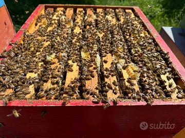 Vendo famiglie su 9 più diaframma o su 10 telai Nuclei su 4-5 o 6 telai Vendo causa insorgenza allergia al veleno ape. Vendita solo telai api o con cassetta completa da accordarsi. Famiglie pronte alla raccolta. Per info chiamatemi