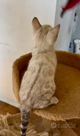 Allevamento amatoriale con affisso, dispone di una bellissima cucciola di bengala Snow con occhi azzurri.
