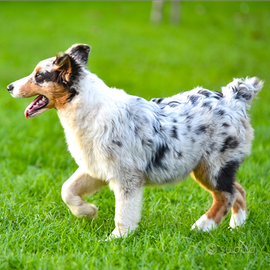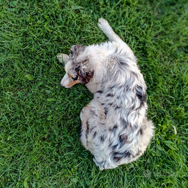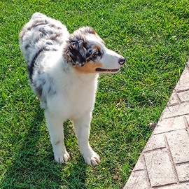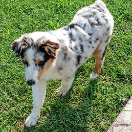 Cucciola femmina blu merle di 9 mesi senza coda. Pastore australiano