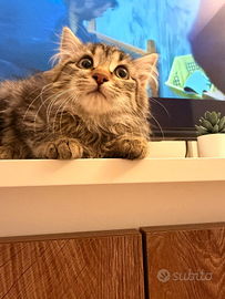 Splendida gattina di due mesi mix British longhair e British shorthair, pronta sin da subito, ben educata a sporcare nella lettiera ed autorizzare il tiragraffi , bravissima ed affettuosa , munita di libretto sanitario doppia sverminazione e antiparassitario, per chi fosse interessato mi contatti pure telefonicamente al 3318069240