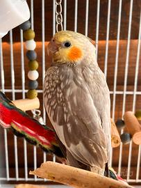 Vendo femmina di Calopsite; Ha circa un anno ed é abituata ad essere presa e portata fuori dalla gabbia.