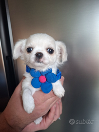 Disponibile Cindy femmina chihuahua pelo lungo bianco crema taglia mini verrà consegnata completa di ciclo vermifugo trattamento antiparassitario vaccino microchip certificato medico libretto sanitario iscrizione anagrafe canina passaggio di proprietà kit cucciolo genitori visibili 3491350788Bergamo