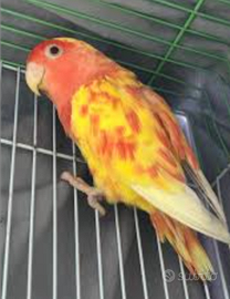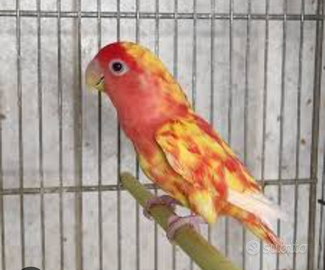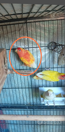 Femmina roseicollis a occhi rossi colore giallo testa rossa con macchie rosse la coda la ho tagliata per sbaglio ma pian piano sta ricrescendo non e in coppia pk è scappato il maschio e pronta alla cova per maggiori informazioni contattatemi 3888721459